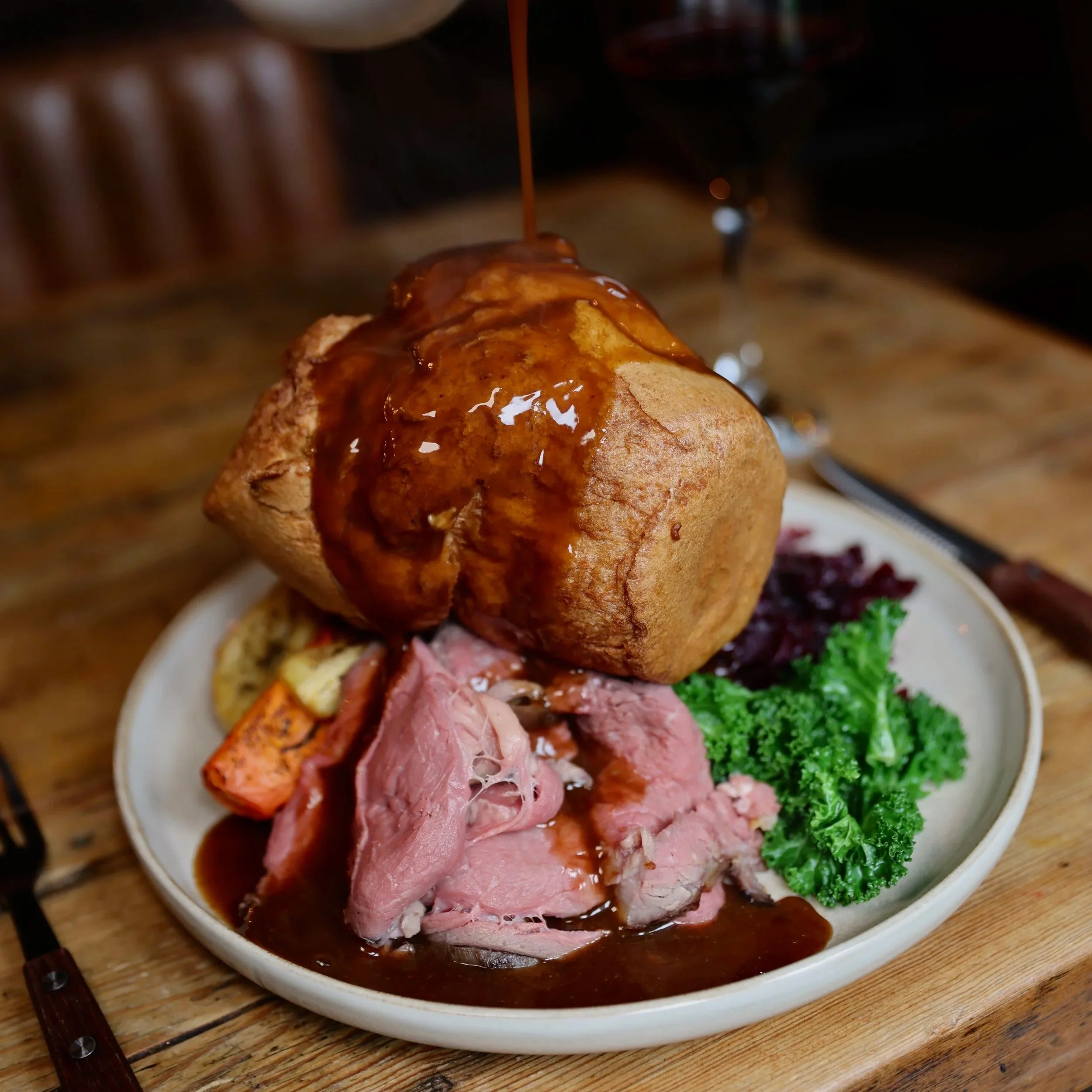 ROASTS Serving Sundays, 12pm when they’re gone, they’re gone! ROASTS EXTRAS ROASTS All Roasts Come With; Herb Roast Potatoes, Maple Glazed Carrot and Parsnip, Buttered Greens, Yorkshire Pudding & Rich Gravy TRIO OF ROASTS FOR TWO – 39.95 Salt Aged Rump of Beef, Roasted Belly Pork, Free Range Chicken Breast SALT-AGED RUMP OF BEEF - 16.95 Served pink or flashed ROSEMARY & GARLIC SWALEDALE LAMB - 15.95 Served pink or flashed ROASTED BELLY PORK - 15.95 YORKSHIRE FREE RANGE CHICKEN BREAST - 15.95 MUSHROOM PIE - 15.95 (ve available on request) - homemade vegan gravy EXTRAS CAULIFLOWER CHEESE - 5.00 YORKSHIRE PUDDING - 1.50 ROAST POTATOES - 5.00 GLAZED CARROTS & PARSNIPS - 5.00 BUTTERED SEASONAL GREENS - 4.00